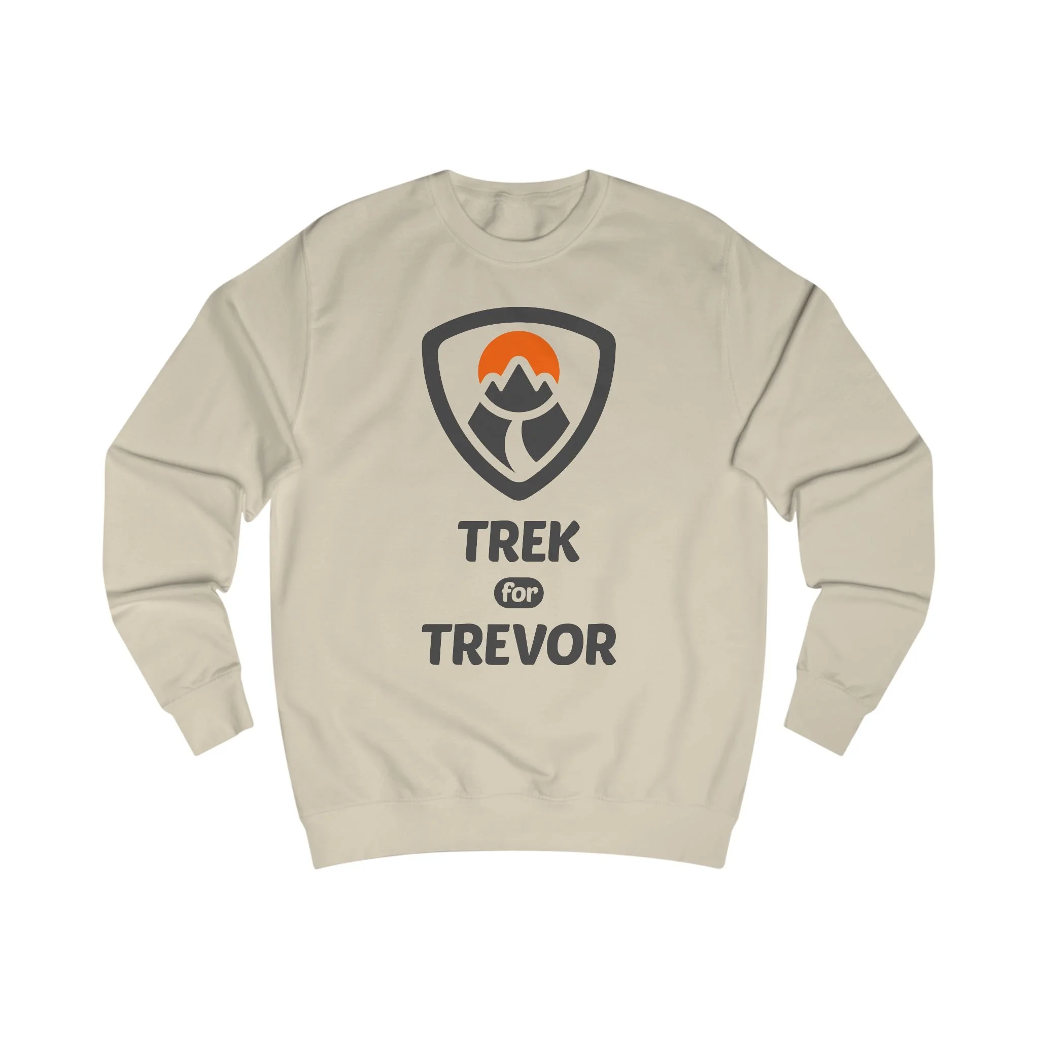 The front carries the Trek for Trevor emblem and bold lettering. The back features a mountain silhouette with "Trek Smart, Trek Safe," the reminder that getting home matters as much as getting there.